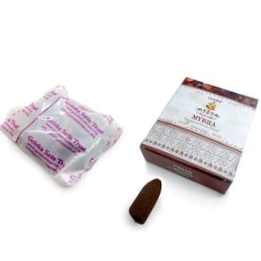 Incenso Cone Goloka Ayurvedic energia Xamânica Mirra O termo Ayuverdic, em português, Ayuvérdico, deriva de Ayuverda que significa Ciência da Vida. É considerado um sistema milenar de medicina da Índia que integra o bem-estar físico ao emocional. Busca a harmonia entre corpo, mente e alma.Assim, o aroma dos incensos é considerado um condutor de energia que a pessoa deseja expandir - no ambiente e em si mesma. Os incensos de Massala, geralmente, são feitos com dois ou mais aromas, pois masala significa mistura. Estes aromas são obtidos das ervas e óleos essenciais utilizados na composição da mistura. O incenso massala são mais puros e se difere do incenso comum em- maior tempo de queima,- melhor fixação do aroma no ambiente,- aroma mais intenso e marcante- ideal para práticas de meditação, em ambientes com menor circulação de ar, durante a prática de yoga, consagração aos deuses, etc. Benefícios Alivia a ansiedade, ocasionando tranquilidade e equilibrando o sono. Incenso Cone indianos Goloka são produzidos com a mais refinada perfumaria da Índia e do Oriente trazendo aromas e energias divinas para a vida das pessoas. Usando um incensário que permita o fluxo de fumaça você pode obter um visual fantástico usando incensos cone backflow . Insira o Incenso Cone na área superior do seu Incensário Cascata de Fumaça e acenda a ponta superior do incenso cone até ficar em brasa, em alguns minutos, a fumaça começa a descer pelo incensário. - Fabricado artesanalmente na Índia- Nenhum trabalho infantil envolvido- Não testado em animais- Não Tóxico- Vegan Friendly Direção: - Mantenha o incensário afastado de correntes de ar ou vento se não a fumaça não irá se movimentar corretamente.- Acenda a ponta do incenso goloka até ele ficar avermelhado em brasa e a fumaça sair por baixo do incenso.- Após isso coloque o incenso no incensário e ele queimará por até 20 minutos. Evite o contato com os olhos e mucosas em geral. Manter fora do alcance de crianças e animais. Composição: Carvão aglutinante, óleo aromático de sândalo e essências. Contém: 10 Incensos Cone Receba o Incenso e Boas Energias Venha Cuidar-se e Decorar Na Mana Om Você recebe seu Incenso E Boas Energias Gratidão, Namastê, Tudo Marca: Plat1