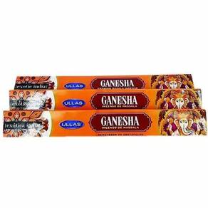 Incenso Indiano Feito na Índia Massala Kit 3 Unid Ullas Exotic Aroma: ganesha Este incenso de lótus vai espalhar paz e criar um ambiente aconchegante. Ele traz a energia de purificação, auxilia nos estudos e eleva as vibrações. A flor de lótus é considerada um símbolo de pureza, iluminação, auto-regeneração e renascimento. Suas características são uma analogia perfeita para a condição humana: mesmo quando suas raízes estão na lama, o Lótus floresce de forma pura e intocável. Massala é o tipo de fabricação do incenso, que tem maior qualidade, além disso, tem como característica o seu cheiro mais marcante. Feito com pó de sândalo, resinas naturais e com óleos essenciais. Massala é sinônimo de qualidade. Os incensos são ideais para purificar, energizar e elevar as energias do nosso ambiente e da nossa mente, além de deixar um perfume delicioso e muito agradável. Este Incenso Sol atrai vibrações positivas, abertura de caminhos e alto astral. O aroma dos incensos é considerado um condutor de energia que a pessoa deseja expandir - no ambiente e em si mesma. Este incenso é um lindo presente. Presentear com Incenso Lotus é perfumar a vida de alguém com um aroma doce e agradável. - Cada Caixinha contém 7 varetas. Marca: By Ello Ean: 7893236693039