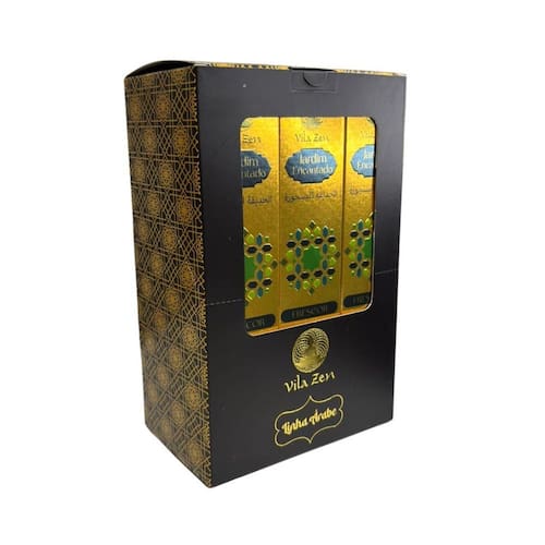 Incenso Vila Zen Linha Árabe Jardim Encantado 12Cxs C10 Var Incenso Vila Zen Linha Árabe Jardim Encantado 12 caixas com 10 Varetas Refinado e revigorante como uma brisa entre e flores raras. Jardim Encantado une a vivacidade da bergamota e da maçã com notas verdes e amadeiradas de vetiver, gerânio e cedro. Um perfume fresco, elegante e sereno - como caminhar por um oásis secreto, onde a natureza floresce no silêncio do deserto. Composição: madeira reflorestada, Farinha de coco, Amido, Ervas aromáticas e Resinas. Detalhes TÉCNICOS: Peso Total da caixa: 400g Quantidade Total: aproximadamente 10 varetas em cada caixa, 120 no total. Produto Nacional, 100% Natural. Tempo de queima aproximadamente de cada vareta 60 min. Modo de Uso Acender o incenso em local adequado. Usar suporte/porta-incenso estável. Manter fora do alcance de crianças e animais. Notas Olfativas Bergamota Gerânio Vetiver Maçã Cedro Tire todas as suas Dúvidas antes de concluir a compra. Iremos responder o mais breve possível. Embalagem de Envio: Caixa de papelão ondulado, plástico bolha, conforme necessidade do produto. Ideal para o seu altar. Ótima resistência e durabilidade. Respostas das dúvidas mais frequentes na ordem: R1: Já realizamos milhares de entregas em todo o Brasil, somos especialistas no que fazemos. R2: Assim que seu pedido for despachado, esta plataforma envia para você o código de rastreamento. R3: Enviamos o produto 100% inspecionado e conferido em nosso checkout e são embalados em embalagem de papelão e plástico bolha. R4: O tempo de entrega irá depender totalmente do seu CEP, todos os nossos produtos saem de Capital. R5: Iremos despachar o seu produto o mais rápido possível, assim que for confirmado pela plataforma, enviamos em até 24h. R6: Nós queremos a sua satisfação, qualquer problema iremos te auxiliar em nossos canais de comunicações. Marca: Não Informado