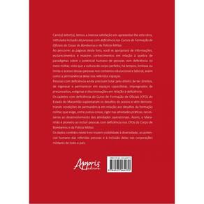 Caro(a) leitor(a), temos a imensa satisfação em apresentar-lhe esta obra, intitulada Inclusão de pessoas com deficiência nos Cursos de Formação de Oficiais do Corpo de Bombeiros e da Polícia Militar. Ao percorrer as páginas deste livro, você se apropriará de informações, esclarecimentos e maiores conhecimentos em relação à quebra de paradigmas sobre o potencial humano de pessoas com deficiência no meio militar, visto que a cultura do corpo perfeito, há tempos, limitava ou limita o acesso dessas pessoas nos contextos educacional e laboral, assim como a permanência delas nos referidos espaços. Pessoas com deficiência ainda precisam lutar pelo direito de ter direitos, de ingressar e permanecer em espaços capacitistas, impregnados de preconceitos, estigmas e discriminações em relação à deficiência. Os cadetes com deficiência do Curso de Formação de Oficiais (CFO) do Estado do Maranhão suplantaram os desafios do acesso e vêm demonstrando condições de permanência em relação aos desafios da formação militar, que exige, entre outras coisas, rigor nas atividades práticas, necessárias ao desenvolvimento das atividades operacionais. Assim, o Maranhão é pioneiro ao incluir pessoas com deficiência nos CFOs do Corpo de Bombeiros e da Polícia Militar. Os dados contidos neste livro trazem visibilidade à diversidade, ao potencial humano das referidas pessoas e à inclusão delas nas corporações militares de todo o país.