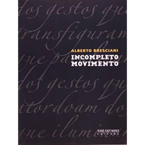 Carinhosos, expansivos, sutis ou abruptos, os gestos são a expressão do que se passa na alma. Em INCOMPLETO MOVIMENTO, Alberto Bresciani compartilha seus desejos de forma elegante através de deliciosa poesia. De maneira minuciosa, o poeta decifra os gestos do dia-a-dia em versos marcados pela sensibilidade e estilo refinado. Dividida em quatro partes, a obra aborda desde os gestos positivos – os que iluminam e transfiguram - aos que traduzem as agruras do ser humano – gestos atordoam e que paralisam. Sem dúvida nenhuma, um livro que encanta por suas reflexões e pela sensibilidade dos versos.