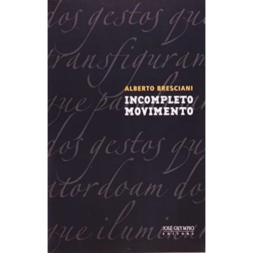 Carinhosos, expansivos, sutis ou abruptos, os gestos são a expressão do que se passa na alma. Em INCOMPLETO MOVIMENTO, Alberto Bresciani compartilha seus desejos de forma elegante através de deliciosa poesia. De maneira minuciosa, o poeta decifra os gestos do dia-a-dia em versos marcados pela sensibilidade e estilo refinado. Dividida em quatro partes, a obra aborda desde os gestos positivos – os que iluminam e transfiguram - aos que traduzem as agruras do ser humano – gestos atordoam e que paralisam. Sem dúvida nenhuma, um livro que encanta por suas reflexões e pela sensibilidade dos versos.
