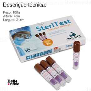 Atributos do Produto:O Indicador Biológico Cristofoli oferece uma fácil interpretação dos resultados, sendo que a ampola teste permanece roxa em casos de esterilização bem-sucedida, enquanto a ampola controle muda para amarelo. Com resultados claros em apenas 24 horas, este produto é essencial para garantir a segurança e eficácia dos processos de esterilização.