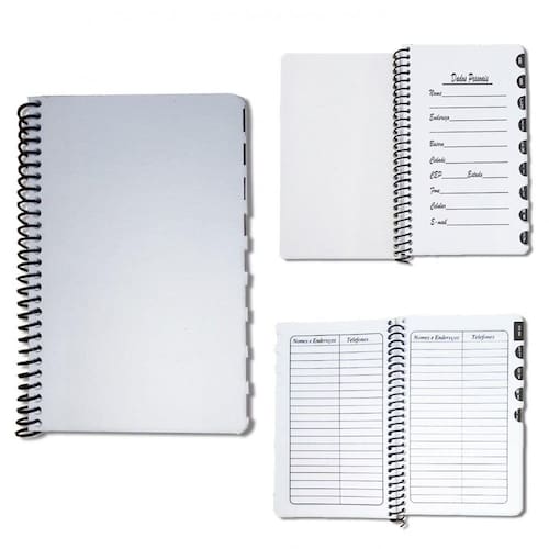 Índice Telefônico Capa Pet Branco Fosco 13 x 20 cm 100 Folhas