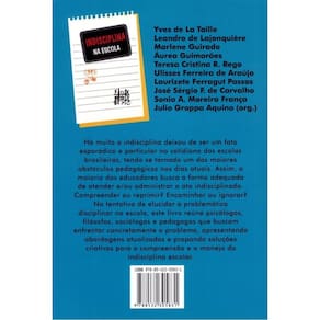 Esta obra apresenta múltiplas abordagens teóricas e possíveis encaminhamentos práticos para o problema da indisciplina na escola. Um panorama contemporâneo dos novos referenciais teóricos, além do pedagógico. Psicólogos, psicanalistas, sociólogos e pedagogos enfrentam a indisciplina com visão atualizada, propondo soluções criativas para a compreensão e o manejo do problema.