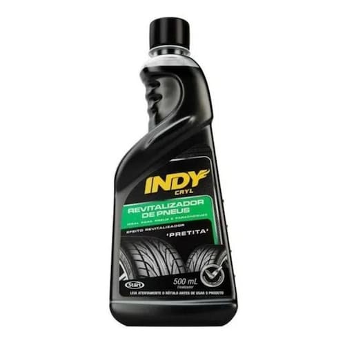 Indy revitalizador pneus 500ml pretita O revitalizador de pneus indy foi elaborado para dar brilho e conservar pneus, tapetes e superfícies de borracha de seu veículo. Cria uma película protetora resistente que proporciona brilho intenso e duradouro, deixando os pneus brilhantes e com aparência de novos.