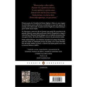 Com tradução primorosa, ganhadora do prêmio Paulo Rónai de tradução da Biblioteca Nacional 2022, o clássico de Dante ganha nova vida e convoca leitores a desbravar as visões infernais descritas pelo grande poeta italiano. Esta edição bilíngue da Penguin-Companhia traz ainda um influente ensaio do russo Óssip Mandelstam, até então inédito no Brasil. Primeira parte da? Comédia ?de Dante Alighieri, Inferno ?é uma viagem às profundezas para onde foram condenados os que não agiram de acordo com a ética cristã. O poeta romano Virgílio éo responsável por guiar Dante nesse trajeto. Ao descrever o percurso de uma alma cristã que parte da consciência do pecado (Inferno), passa pela purificação interior (Purgatório) e chega à visão de Deus (Paraíso), Dante dialoga com as tradições da poesia clássica greco-latina, dos textos bíblicos e mesmo do pensamento árabe. Marca: PENGUIN - COMPANHIA DAS LETRAS