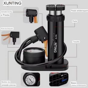 O pacote inclui: - 1 bomba de ar com manômetro Xunting - 1 agulha - 1 bico Marca: XUNTING