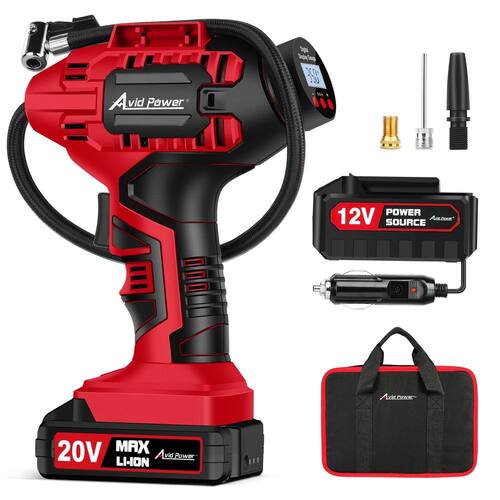 Seu excelente ajudante em viagens – compressor de ar portátil para inflador de pneus Avid Power, bomba de ar para carro, compressor de ar operado por bateria Motor superior e pressão máxima de 100 PSI – Esta bomba de ar para pneus de carros é perfeita para inflar pneus de carros, motocicletas e bicicletas, bolas esportivas e brinquedos infláveis, etc. Função de predefinição e parada automática – Com a função de desligamento automático deste compressor de ar para carro, você não precisa mais se preocupar com inflar demais ou baixa pressão do pneu. Quantos pneus de carro você pode inflar com bateria completa (sem gás até 36 PSI) 1. Para o tamanho de pneu de 195/60R/14, esta bomba de ar portátil para pneus de carro pode inflar 4 pneus de carro e leva cerca de 3 minutos para encher um pneu sem gasolina. 2. Para o tamanho de pneu de 215/60R/16, este inflador de pneu sem fio pode inflar 3 pneus de carro e leva cerca de 5 minutos para encher um pneu sem gasolina. 3. Após 15 minutos de uso contínuo, é melhor deixar a bomba de ar do pneu esfriar por cerca de alguns minutos. Especificações desta bomba de pneu para bicicleta e carro: Pressão máxima: 100PSI Unidades de pressão: PSI, KPA, BAR, KG/CM ) Tipo de bateria: íon de lítio Capacidade da bateria: 1500 mAh Luz LED: embutida Tempo de carregamento: 3-5 horas Comprimento da mangueira de ar: 50 cm Conteúdo da embalagem: 1 compressor de ar sem fio Avid Power 20V 1 adaptador de energia para carro de 12 V. 1 carregador de bateria. 3 bocais. 1 bolsa de ferramentas. 1 manual de instruções (idioma português não garantido). - [Desligamento automático] Simplicidade encontra funcionalidade. A bomba de ar para carro AVID POWER oferece a você uma experiência de uso tranquila com base na função de desligamento automático. Defina o nível de pressão desejado e comece a inflar o trabalho. O compressor de ar do carro desligará automaticamente no nível desejado. Não há necessidade de se preocupar em inflar demais, a precisão da pressão indicada é +/- 1 PSI - [Fonte de alimentação dupla] A fonte de alimentação de bateria de íon de lítio recarregável de 20 V e a fonte de alimentação CC 12 V tornam a inflação mais fácil. Você não precisa se preocupar em ficar sem bateria durante a viagem com a fonte de alimentação alternativa do adaptador CC de 12 V. Uma ótima solução para emergências a caminho - [Inflação rápida] Materiais de alta qualidade foram fornecidos para este compressor de pneu, pois ele pode inflar um pneu sem gás 195/60 R14 em 3 minutos e um pneu sem gás 215/60 R16 em 5 minutos a 38 PSI. Observação: esfrie a máquina 3 minutos após 10 minutos de uso contínuo - [Multiuso] Este inflador de pneus portátil é compatível com carros, motocicletas, bicicletas, bolas esportivas e brinquedos infláveis de piscina, etc. Observação: não é adequado para pneus de veículos maiores que 245 mm ou a pressão do pneu excede 50PSI - [Ergonomia] O design ergonômico torna fácil e confortável de usar colocá-lo no chão ou segurar na mão enquanto infla. O LED embutido acende enquanto o inflador de ar está funcionando, ilumina o local de trabalho escuro - [Conteúdo da embalagem] Um inflador de pneu sem fio, bateria de íon de lítio de 20 V, adaptador de energia para carro de 12 V, carregador de bateria, 3 bicos, manual do usuário e uma bolsa de ferramentas para facilitar o armazenamento