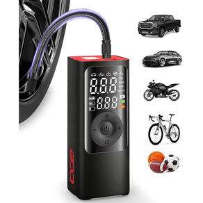 - ? & ?Compressor de ar portátil para inflador de pneu de carro embutido em bateria recarregável de alta capacidade de 2500 x 3 mAh, inflação contínua de 40 minutos. A bomba de pneu é fácil de operar, fivela de conexão rápida, leva apenas 1 segundo para conectar o tubo de enchimento e o inflador. Bomba de ar sem fio e portátil, fácil de transportar para qualquer lugar.