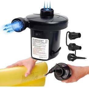 Instruções de Uso: Versatilidade: Ideal para inflar barcos infláveis, colchões de ar e outros grandes infláveis de volume. em Primeiro Lugar: Nunca deixe a bomba sem vigilância enquanto estiver em uso e mantenha fora do alcance das crianças para evitar acidentes.