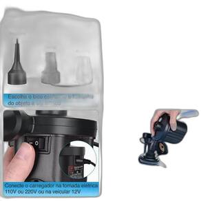 Inflador elétrico rápido e seguro - ideal para uso diário Bomba pneumatica - infla e esvasia - 3 bicos adaptadores - 1 fonte 110-240v - 1 adaptador veicular Perfeito para viagens, acampamentos ou uso domestico Esse modelo de bomba elétrica é ideal para facilitar a sua vida. Para inflar e desinflar boias, botes, balões e colchões com alto volume de ar. Possui alto fluxo de ar e acompanha 3 bicos adaptadores diferentes para os mais diversos tipos de infláveis, enche e esvazia apenas trocando o fluxo de ar. É um aparelho multifuncional que pode ser em uma tomada 100-240v ou encaixado na entrada 12v do carro. Marca: Não Informado