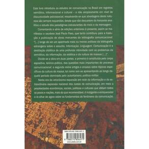 Esta obra introduziu os registros semiótico e informacional nos estudos brasileiros de comunicação. A primeira parte contém exposições de cunho teórico-prático; já a segunda traz textos sobre a cultura de massa, escritos durante a ditadura militar. Vivemos num contexto distinto, com a veloz expansão das redes de informação e dos cursos de comunicação. Não por acaso, este livro proporciona um instigante re-olhar sobre a comunicação e suas relações com a economia, a cultura e a política.