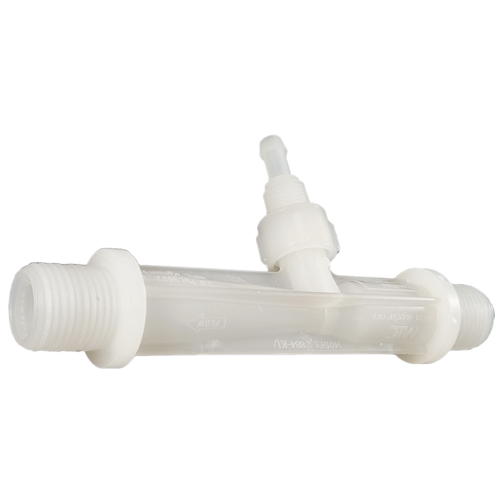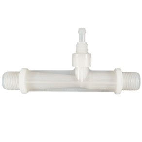 O Injetor Venturi é a peça responsável pela injeção do ozônio na água, sem ele o sistema não funciona. A peça faz com que o ozônio gerado pelo gerador se misture na corrente de água, fazendo com que a água ozônizada chegue até a piscina.