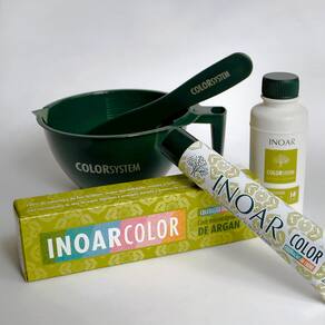Inoar Color Coloração em Creme, possui microcápsulas visíveis de Argan e ativos tecnológicos que conferem hidratação e proteção à fibra capilar durante o procedimento químico.