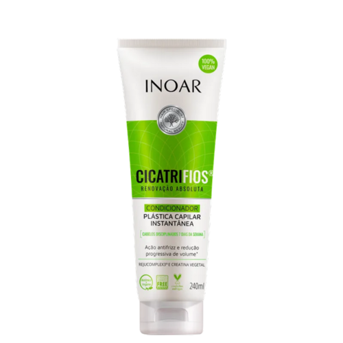Inoar Condicionador Cicatrifios Bisnaga 240g Inoar Cicatrifios pode ser utilizado por todos os tipos de cabelos e foi desenvolvido especialmente para cabelos danificados. Cicatrifios é a evolução em tratamento que oferece inúmeros benefícios para um cabelo renovado. A linha possui em sua composição RejuComplex3, uma tecnologia capaz de regenerar os fios. Ele age como uma plástica capilar instantânea para renovar o cabelo, devolver a saúde e beleza, regenera a estrutura para devolver a maciez e brilho aos fios. O Condicionador Cicatrifios promove renovação absoluta para os fios, reduz a quebra e o frizz, sela as cutículas, protege do calor e redução de volume gradativamente. Modo de Usar: Com os cabelos lavados e úmidos, aplique uma quantidade suficiente de condicionador no comprimento e pontas, deixe agir 1 minuto. Enxágue. Para mais resultados utilize a linha completa Inoar Cicatrifios para uma Renovação Absoluta dos fios. Contém: 01- Inoar Cicatrifios Condicionador Bisnaga 240g.
