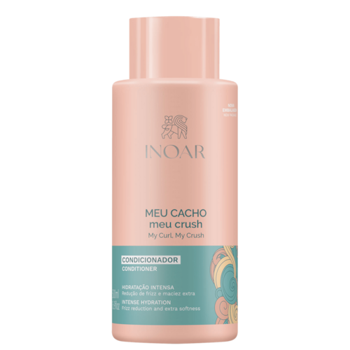 Condicionador para cabelos cacheados. Inoar Meu Cacho Meu Crush oferece hidratação e nutrição profunda, definindo os fios. É ideal para cabelos crespos, ondulados e com cachos, pois sua formulação confere reparação e fortalecimento dos fios.