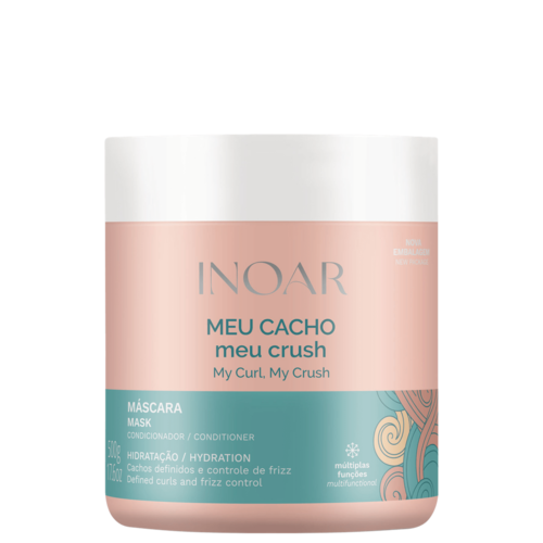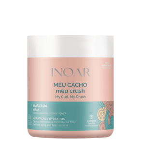 Máscara para cabelos cacheados, crespos e ondulados. Inoar Meu Cacho Meu Crush promove hidratação intensa e revitalização dos fios.