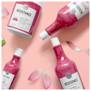 Condicionador para cabelos enfraquecidos. Inoar Résistance Flor de Lótus regenera os fios para mais brilho, maciez e maleabilidade.