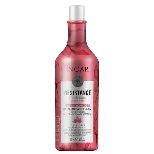 Condicionador Inoar Résistance Flor de Lótus restaura e possui alto poder hidratante, além de facilitar o pentear. Ideal para quem deseja um cabelo saudável.