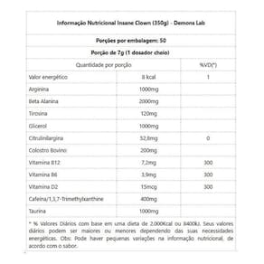 O Insane Clown da Demons Lab é um suplemento pré-treino formulado para proporcionar uma experiência intensa e explosiva durante seus treinos.