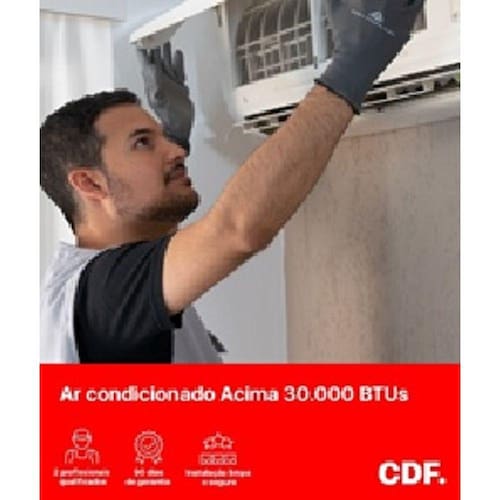 Serviços inclusos: - Visita de avaliação técnica prévia, sempre que necessário; - Instalação da unidade condensadora e evaporadora do aparelho; - Conexão do equipamento à rede elétrica (infraestrutura previamente disponibilizada pelo cliente); - Conexão a rede de drenagem de água (dreno – infraestrutura previamente disponibilizada pelo cliente); - Fornecimento de até 5 metros de tubulação linear entre a unidade condensadora e evaporadora (tubulação de cobre); - Fornecimento do isolamento térmico da tubulação de conexão; - Fornecimento de cabo PP (até 5 metros) para conexão elétrica entre a unidade condensadora e evaporadora; - Furação reta na parede do ambiente interno para o externo; - Fornecimento e fixação do suporte de parede metálico adequado para a condensadoras de descarga vertical acima de 30.000 até 36.000 BTUS (Unidade Externa); - Demonstração de uso e orientações sobre funcionalidades básicas do produto; - Suporte remoto para dúvidas sobre o equipamento e suas principais funções.