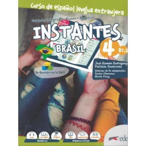 Instantes Brasil - Curso de español lengua extranjera. Unidades integradas: Alumno + Ejercicios + Libro digital (Plataforma = audio + libro digital + ELE digital / Realidad aumentada = Vídeo + Aula invertida + Actividades). De acuerdo con la BNCC. Marca: EDELSA **