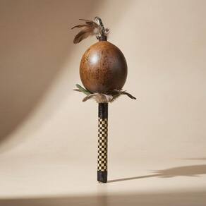 O maracá é um instrumento musical artesanal, feito com materiais naturais coletados na Mata Atlântica. Fabricado com cipó Imbé, bambu, penas naturais, cipó Imbiruçu e coité, ele é cuidadosamente tratado para garantir a qualidade e autenticidade da peça. Produzido por índios da etnia Tupi, o maracá carrega em si a tradição cultural e musical dessa rica etnia.
