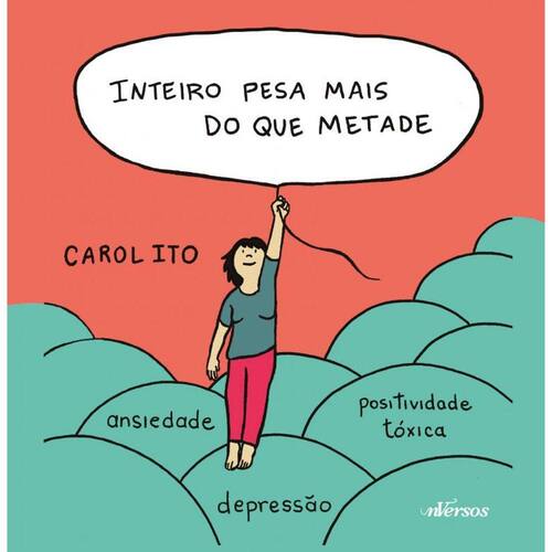 Como é possível sobreviver à depressão em um mundo tão competitivo e que nos cobra o tempo todo pelo sucesso e pela felicidade plena? Em Inteiro pesa mais do que metade , escrito e ilustrado por Carol Ito, a autora nos conduz por uma jornada pessoal , complexa e introspectiva, na qual proporciona uma visão realista de sua própria experiência com a ansiedade e a depressão, assim como o caminho sinuoso e difícil para a recuperação. Uma trajetória cheia de altos e baixos, não só da Carol, mas de to dos que estão de certa forma enfrentando esse mal silencioso, que, segundo Andrew Salomon – autor de O Demônio do Meio-Dia –, "depressão não escolhe ninguém pela classe social, etnia, gênero ou idade. Nem é preciso estar vivendo numa situação extre ma [...] ou a perda de uma pessoa para adoecer". Por meio de sua arte, a autora cativa o leitor de forma tocante e sensível, e fomenta um interessante diálogo sobre a doença do século XXI. Nessa edição, as tiras anteriormente postada nas redes soci ais ganham uma nova edição, com capa dura e páginas coloridas! Além disso, conta com novas tirinhas escritas especialmente para esta edição.
