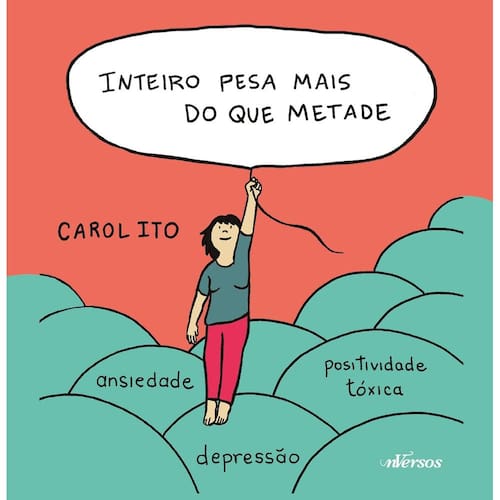 Como é possível sobreviver à depressão em um mundo tão competitivo e que nos cobra o tempo todo pelo sucesso e pela felicidade plena? Em Inteiro pesa mais do que metade , escrito e ilustrado por Carol Ito, a autora nos conduz por uma jornada pessoal, complexa e introspectiva, na qual proporciona uma visão realista de sua própria experiência com a ansiedade e a depressão, assim como o caminho sinuoso e difícil para a recuperação. Uma trajetória cheia de altos e baixos, não só da Carol, mas de todos que estão de certa forma enfrentando esse mal silencioso, que, segundo Andrew Salomon autor de O Demônio do Meio-Dia , depressão não escolhe ninguém pela classe social, etnia, gênero ou idade. Nem é preciso estar vivendo numa situação extrema ... ou a perda de uma pessoa para adoecer . Por meio de sua arte, a autora cativa o leitor de forma tocante e sensível, e fomenta um interessante diálogo sobre a doença do século XXI. Nessa edição, as tiras anteriormente postada nas redes sociais ganham uma nova edição, com capa dura e páginas coloridas! Além disso, conta com novas tirinhas escritas especialmente para esta edição.