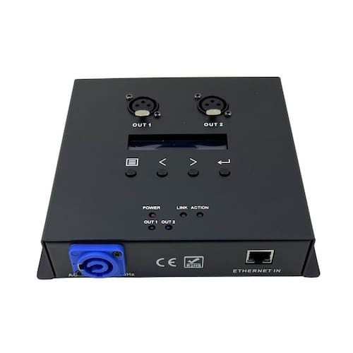 Interface artnet node2 Descrição geral: O artnet node2 é um dispositivo avançado para transmissão e gerenciamento de dados via protocolo artnet, amplamente utilizado em iluminação cênica e sistemas de controle dmx em redes ip. Ele converte dados artnet ethernet em sinais dmx512 e vice-versa, sendo ideal para aplicações em teatros, eventos e instalações arquitetônicas. Especificações técnicas: Interface: Protocolos suportados: Artnet, sacn, dmx512 Conexões de rede: Ethernet rj45 10/100 mbps Suporte a poe power over ethernet opcional Entradas/saídas dmx: 1 a 2 universos configuráveis Conectores xlr de 3 ou 5 pinos Configuração e controle: Método de configuração: Interface web integrada para gerenciamento remoto Configuração por dhcp ou ip estático Leds indicadores: Status de rede link/activity Estado das portas dmx Desempenho: Latência: 5ms em redes otimizadas Capacidade: até 2 universos dmx 1024 canais Características físicas: Dimensões: aprox. 120 mm x 80 mm x 40 mm Peso: 300 g Material do enclosure: alumínio anodizado ou plástico abs resistente Alimentação Fonte externa: 9-24v dc Consumo: máx. 3w Poe opcional : ieee 802.3af compatível Compatibilidade: Sistemas operacionais: Windows, macos, linux Softwares compatíveis: Grandma, qlc+, etc eos, chamsys, etc. Ambiental: Temperatura de operação: 0c a 50c Temperatura de armazenamento: -10c a 70c Umidade: 10% a 90% não condensante Recursos adicionais: Fail-safe: modo de recuperação para falhas de comunicação Firmware atualizável: via usb ou rede Montagem: Opção para rack, trilho din ou instalação fixa Aplicações: Controle de iluminação em shows, teatros, eventos e instalações arquitetônicas. Soluções de iluminação sincronizadas em redes locais e remotas . Itens incusos: 01 interface artnet node2 Marca: Não Informado Ean: 7902913950386