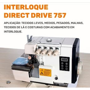 Eficiência no trabalho de no mínimo de 30 a 40% Máquinas super silenciosas que a costureira pode trabalhar até a noite sem perturbar os vizinhos Motores super silenciosos que só funcionas automaticamente quando o pedal é acionado com o potencial de 550 Watts Motores com capacidade para trabalhar em 220 Volts, Motor direct drive conectado diretamente no eixo evitando o uso de correia e aumentando o rendimento e diminuindo o desgaste e ruído Máquinas com posicionador de agulha onde a costureira pode ajustar a parada em cima ou embaixo, de acordo a exigência do trabalho que a mesma esteja executando Máquina com protetor de agulhas atendendo a norma NR12 Máquina com luminária de LED que clareia muito mais, super econômica e torna o trabalho mais confortável para a operadora Máquina de costura tipo overloque plana industrial para tecidos médios, leve com uma agulha 3 linhas, para costura e chuleio com lubrificação automática Velocidade 6000 PPM com o controle de ajuste de velocidade, regulável conforme a necessidade do aluno ou da costureira; por exemplo o aluno ou a costureira pode ajustar a velocidade em apenas 2000 PPM; 30000 PPM; de acordo a necessidade e habilidade em dirigir a costura Comprimento máximo de 3,6mm do ponto, com elevação máxima do calcador 6mm Carter de Aço/Alumínio com todos os acessórios e ferramentas tais como: porta fio, pinças, agulhas e outros Maquina montada em uma estante de aça com bancada de madeira e fórmica, altura compatível com as normas ergonômicas