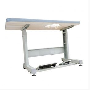– Montagem completa (Mesa em madeira revestida em fórmica / pé (estante) em ferro com altura regulável – Máquina de costura completa com manual e seus acessório – Máquina em conformidade com a Nr12