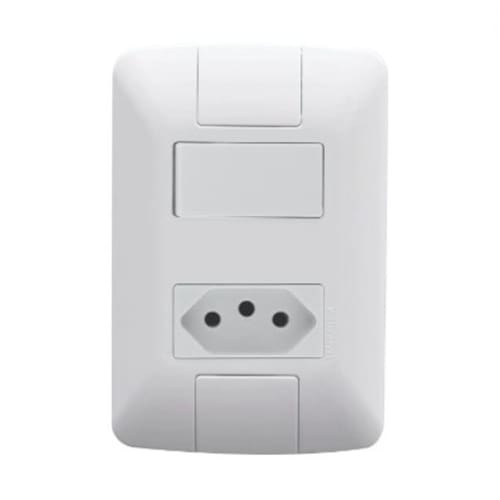 Utilize o Conjunto 4x2 com 1 Interruptor Simples 6 A 250 V e 1 Tomada 2P+T 10 A 250 V Tramontina Aria Branco e tenha um item completo para ligar equipamentos elétricos e eletrônicos e ainda acender as luzes do ambiente.