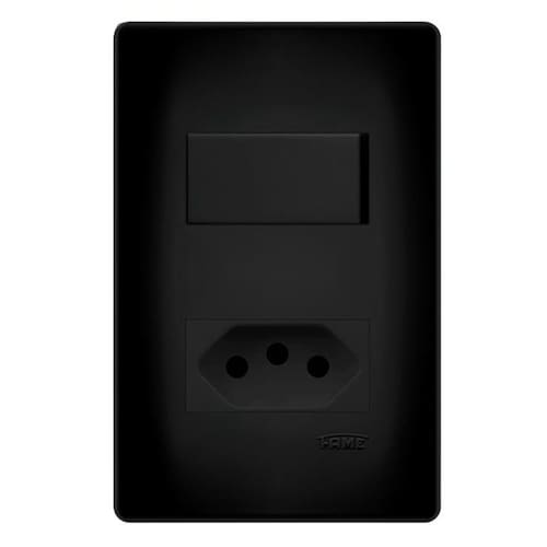 16A + Tomada 20A Placa4X2 Habitat Black A Série Habitat FAME que já é referência no mercado pela sua qualidade, seu design exclusivo e acabamento acetinado, ganhou uma nova versão: Habitat Black Com acabamento preto acetinado a Série Habitat Black, é ideal para quem procura uma linha de material elétrico de qualidade que combine com sua decoração ou simplesmente prefere dar um toque de exclusividade e sofisticação em suas instalações elétricas. - Design e Tecnologia. - Agilidade na instalação. A FAME LTDA. Garante este produto contra eventuais defeitos de fabricação pelo prazo de 5 anos, contados e comprovados pela data de emissão do comprovante fiscal de venda ao consumidor, com atendimento no próprio local de aquisição. Validade: Produto não perecível. Importante: Antes de iniciar a instalação desligue o circuito elétrico. Convém que seja instalado por pessoa qualificada. Contem: 1 16A preto 1 Tomada 2P+T 20A preto 16a/250v 1 placa 4x2 preta para dois modulos com suporte Marca: Não Informado