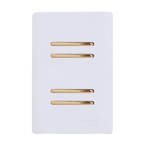 Com design diferenciado, alta qualidade e fácil instalação, a Dicompel inovou no mercado de Tomadas e Interruptores modulares com a linha Novara. Diferente de tudo que existe. As teclas finas e cromadas são de pintura automotiva, assim não descascam nem perdem a cor. As placas possuem diversas opções de cores para combinar com a sua casa ou empreendimento e não ficam amareladas com o tempo pois possuem proteção UV. A montagem é rápida e fácil. Os parafusos não ficam aparentes.Interruptor 4 Teclas de ligação Simples Inclui: Módulos + Placa + Suporte para fixação + Parafusos Dimensão Placa: 4x2 Cor Placa: BrancoCor Tecla e Borda Tomada: Gold Dourada Material: ABS de alta resistênciaMarca: Dicompel, empresa certificada ISO 9001 mais segurança e vida útil para o seu produtoLinha: NovaraGarantia: 5 anos de garantia