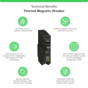 Square D - QO130CP Interruptor automático unipolar de 30 amperios - Conozca las actualizaciones generales del NEC 2020; consulte con su inspector local de edificaciones para la adopción del código y detalles - Diseño plug-on, fácil de instalar - Diseñado para proteger contra sobrecargas y cortocircuitos - Identifique rápidamente los interruptores disparados con nuestro indicador Visi-Trip - Compatible con paneles eléctricos Square D QO, CSED con 1 espacio