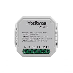 O Interruptor Intelbras EWS 222 permite que você acione, controle e automatize remotamente equipamentos elétricos através do aplicativo Izy Smart, de maneira fácil e inteligente. Com entrada para dois interruptores, transforma interruptor comum em interruptor inteligente, para que possam ser realizadas automações residenciais e cenários. Ou seja, você ganha em praticidade e torna seu dia a dia muito mais moderno! Caracteristicas: - Wi-Fi - Smart - Duas entradas para interruptor - Aciona a iluminação de até dois cenários diferentes, simultaneamente, via app ou comando de voz, sem perder a funcionalidade do interruptor - Controle compartilhado: cadastre até 10 usuários no aplicativo Izy e utilize o dispositivo com sua família - Sistemas compatíveis: IOS (9.0 ou superior) / Android (4.4 ou superior) - Local de instalação: ideal para embutir em caixa 42 ou caixa de teto - Bitola máxima de fio: 1,5mm - Corrente máxima: 10A (FP=1) - Frequência da rede elétrica: 50/60Hz - Potência máxima de carga: 1.200W - Consumo de energia máximo: 1,2W - Temperatura de operação: 0 a 40 - Distância máxima: 15 a 20m, com visada direta ao roteador - Material plástico: proteção anti-chama - Dimensões: 50,5 x 46 x 19mm *Imagens meramente ilustrativas. Tensão/Voltagem: Bivolt Conteúdo da embalagem:1 Interruptor Intelbras EWS 222 Cor: Branco