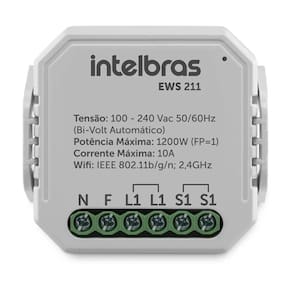 Descricao O Controlador inteligente EWS 211 com uma entrada para interruptor comum e uma saida e utilizado no acionamento automatico atraves de aplicativo em ambientes residenciais e comerciais. O EWS 211 permite que o usuario acione, controle e automatize remotamente equipamentos eletricos atraves do aplicativo IZY Smart de maneira facil e inteligente. O produto alia caracteristicas de praticidade, economia de energia e seguranca.Especificacoes:Ideal para instalar em caixas 4x2 ou em caixa de tetoConexao direta ao roteador, sem necessidade de hub centralControle por aplicativoEntrada para um interruptor comum, transforma interruptor comum em interruptor inteligenteRealizacao de automacoes residenciaisRealizacao de cenariosCompatibilidade com e Assistente*Imagens meramente ilustrativas.Especificacao Tecnica Tensao de Alimentacao: Bivolt automatico (100 ~ 240 Vac)Frequencia da rede eletrica: 50/60 HzPotencia Maxima de carga: 1200 W (FP=1)Corrente maxima: 10 A (FP=1)Consumo de energia maximo: 1,2 WTemperatura de operacao 0 a 40 CDimensoes: 50,5x46x19mmEntrada para interruptor: 1 (entrada para o do interruptor)Distancia maxima: 15 a 20 m com visada direta ao roteadorWi-Fi: IEEE GHzSeguranca de dados: ERP64/WEP128/TKIP/AESSistemas compativeis: IOS ( ou superior)/ ( ou superior) de instalacao: Ideal para embutir em caixa 4x2 ou caixa de tetoBitola maxima de fio: BrancoMaterial Plastico: Protecao Anti-ChamaCertificacao: ANATEL