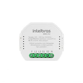 Descrição: Ajuste a intensidade da luz de até dois ambientes com o minicontrolador dimmer smart EWS 252. O dispositivo permite o controle da iluminação através do app Izy Smart, por assistente de voz e também por meio de interruptor de tecla física do tipo pulsador. Ele pode ser instalado de forma discreta embutido na caixa 42? do interruptor de luz. Através da conexão Wi-Fi à internet é possível deixar seu ambiente inteligente e automatizado através de agendamentos e programações de acionamento feitas pelo aplicativo, com possibilidade de integrar com outros dispositivos inteligentes da linha Izy como sensores, câmeras e fechaduras. Ajuste da intensidade da luz com o minicontrolador Regule a intensidade da luz de até dois ambientes pelo interruptor, aplicativo ou assistente de voz. Características técnicas Tensão de alimentação: 100 ~ 240 Vac (bivolt automático) 50/60 Hz Potência máxima de carga: 100 W (FP = 1) por canal Consumo: 1,2 W Número de canais: 2 Conexão elétrica: Fase (F), Neutro (N), Carga 1 (L1), Interruptor 1 (S1), Carga 2 (L2), Interruptor 2 (S2) (as cargas devem ser lâmpadas dimerizáveis, os interruptores devem ser do tipo pulsador) Bitola máxima de fio: 1,5 mm Conectividade: Wi-Fi IEEE 802.11b/g/n 2,4 GHz + Bluetooth 4.2 Wi-Fi - distância máxima do roteador: 15 a 20 m sem obstáculos App Izy Smart ? sistemas compatíveis:: iOS 9.0 ou superior, Android 4.4 ou superior Material: plástico com proteção antichama Local de instalação: ideal para embutir em caixa 42?, acompanha suporte para instalação em trilho DIN (não indicado para instalação dentro de quadro metálicos). Temperatura de operação: 0 a 40 C Garantia 1 ano Freqência de operação 50/60 Hz Modelo do produto EWS 252 Cor Branco Quantidade pacote 01 Comprimento do produto 1,9 cm Largura do produto 5,3 cm Altura do produto 1,9 cm Peso do produto 0,05 kg Conteúdo da embalagem 01 x minicontrolador 01 x suporte de fixação 01 x guia rápido...
