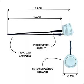 Interruptor Simples com dois pinos para embutir em madeira, MDF, MDP ou derivados.