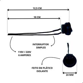Interruptor Gota Redondo Simples Preto 2 Pinos Com Cabo 10Cm