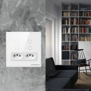 Descrição Novo modelo do interruptor com tomada zigbee, agora no padrão 4x4 e com duas tomadas! Total controle via aplicativo ou por comando de voz.