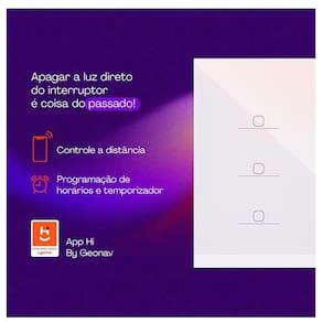 O Interruptor Inteligente da Geonav é uma versão aprimorada que substitui os modelos convencionais de 6 botões, oferecendo uma gestão e controle da iluminação por aplicativo. Com um design elegante e único, sua construção é feita de vidro temperado e possui uma superfície sensível ao toque, com a opção de um indicador de LED para facilitar a visualização durante a noite. Além de ser moderno, esse produto valoriza o ambiente, proporcionando diversas vantagens, como comodidade, segurança, economia de energia e praticidade para o dia a dia. O interruptor funciona utilizando a tecnologia Zigbee, que atua como um repetidor de sinal, ampliando a comunicação com outros dispositivos Zigbee através de uma central de automação Zigbee. Através dessa central, é possível ligar e desligar a iluminação a distância, programar horários e criar cenas utilizando outros produtos da linha de automação da Geonav, tudo isso através do aplicativo Hi by Geonav. Além disso, o interruptor é compatível com os principais assistentes de voz, como a Amazon Alexa e o Google Assistente, permitindo que você ligue e desligue a iluminação apenas com um simples comando de voz. Caso você não saiba como realizar a instalação, não se preocupe. A instalação é simples e o produto acompanha um manual com um diagrama detalhado de instalação. Se preferir, você também pode contar com a ajuda de um profissional experiente na área de elétrica. Características Tipo: Interruptores Conexão: Zigbee Compatibilidade: IOS e Android Compatibilidade em caixas de interruptores 4x4 Necessita do fio neutro para instalação Defina se o estado do LED no botão ficará aceso ou apagado Ligue ou desligue circuitos de iluminação pelo aplicativo* Acione por comando de voz Compatível com Amazon Alexa e Google Assistente Defina se o dispositivo voltará ligado ou desligado em caso de queda de energia Homologado Anatel *Importante: Para funcionar com o aplicativo, é necessário o uso de uma central de automação Zigbee/Tuya Especificações Técnicas Modelo: HIZINT6C Alimentação: Voltagem: Bivolt EAN: 7898739500051 Garantia: 12 meses Certificado de Homologação da ANATEL: 10370-23-13546 Dimensões e Peso Dimensões do produto sem embalagem (AxLxP): 129x90x129 mm Dimensões do produto com embalagem (AxLxP): 70x152x150 mm Peso do produto sem embalagem: 0,266 Kg Peso do produto com embalagem: 0,114 Kg Itens Inclusos 01 Interruptor Inteligente Zigbee 6 Botões Touch 04 Parafusos 01 Manual do Usuário