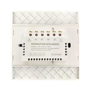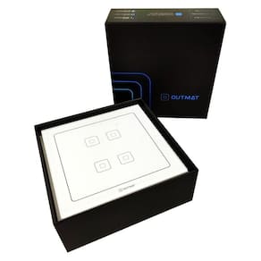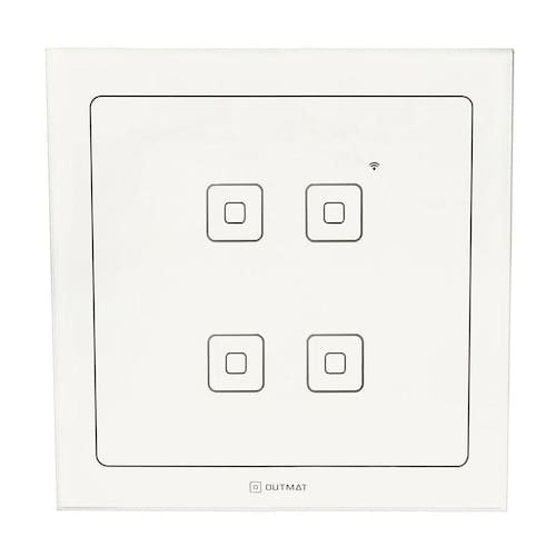Descrição do Produto:Com a nova linha de interruptores inteligente Touch WiFi da Outmat você pode controlar todas suas lâmpadas a distância. Você pode utilizar assistentes de voz como Alexa, Google Assistente e Siri para ligar e desligar suas lâmpadas utilizando simples comando de voz. Com um único aplicativo você tem total controle sobre suas lâmpadas, podendo criar ambientes para facilitar navegação no aplicativo.---------------------------------------------------------------------------------------------------------------Características:- Touch screen sensível ao toque com acendimento do led na cor azul;- Controle por aplicativo remotamente através de seu smartphone ou tablet. Recomendamos a utilização do Smart Life;- Controle por comando de voz, utilizando o Alexa, Google Assistente e Siri;- Programe cronômetros de contagem regressiva, dias e horários para ligar e desligar;- Status de acionamento no aplicativo (saiba se ficou ligado ou desligado sua iluminação de onde estiver);---------------------------------------------------------------------------------------------------------------Especificações:Modelo: OMI41B;Cor: Branco;Quantidade de Botões: 4;Dimensões: 118 x 118 x 39mm;Padrão das caixinhas: 4x4;Voltagem: Bivolt (100 a 240 Vac);Corrente Max: 2A por saída;Potência Max: 500W por saída;Padrão Wi-Fi: 802.11 b/g/n;Segurança Wi-Fi: WPA-PSK/WPA2-PSK- WiFi 2.4ghz;-----------------------------------------------------------------------------------------------------------------Conteúdo:1x Interruptor Outmat;1x Manual em Português;1x Conjunto de parafusos;-----------------------------------------------------------------------------------------------------------------Informações Importantes:O dispositivo é acionado utilizando sua rede de internet wi-fi sinal 2.4g, ou seja, o sinal deve ser de boa qualidade para que o mesmo funcione de forma eficiente.A instalação é simples, porém, é necessário alimentar o dispositivo com o cabo neutro para ligações em 127v ou fase + fase para as ligações em 220v, caso contrário o dispositivo não funciona. Caso seja necessário contrate um técnico especializado.O interruptor pode apresentar falhas (ficar piscando) ao ser utilizados em circuitos com a potência muito baixa inferior a 4w. Favor atentar-se a aplicação do mesmo antes da compra. Marca: Outmat