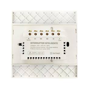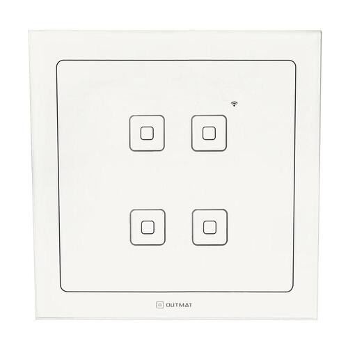Descrição do Produto:Com a nova linha de interruptores inteligente Touch WiFi da Outmat você pode controlar todas suas lâmpadas a distância. Você pode utilizar assistentes de voz como Alexa, Google Assistente e Siri para ligar e desligar suas lâmpadas utilizando simples comando de voz. Com um único aplicativo você tem total controle sobre suas lâmpadas, podendo criar ambientes para facilitar navegação no aplicativo.---------------------------------------------------------------------------------------------------------------Características:- Touch screen sensível ao toque com acendimento do led na cor azul;- Controle por aplicativo remotamente através de seu smartphone ou tablet. Recomendamos a utilização do Smart Life;- Controle por comando de voz, utilizando o Alexa, Google Assistente e Siri;- Programe cronômetros de contagem regressiva, dias e horários para ligar e desligar;- Status de acionamento no aplicativo saiba se ficou ligado ou desligado sua iluminação de onde estiver ;---------------------------------------------------------------------------------------------------------------Especificações:Modelo: OMI41B;Cor: Branco;Quantidade de Botões: 4;Dimensões: 118 x 118 x 39mm;Padrão das caixinhas: 4x4;Voltagem: Bivolt 100 a 240 Vac ;Corrente Max: 2A por saída;Potência Max: 500W por saída;Padrão Wi-Fi: 802.11 b/g/n;Segurança Wi-Fi: WPA-PSK/WPA2-PSK- WiFi 2.4ghz;-----------------------------------------------------------------------------------------------------------------Conteúdo:1x Interruptor Outmat;1x Manual em Português;1x Conjunto de parafusos;-----------------------------------------------------------------------------------------------------------------Informações Importantes:O dispositivo é acionado utilizando sua rede de internet wi-fi sinal 2.4g, ou seja, o sinal deve ser de boa qualidade para que o mesmo funcione de forma eficiente.A instalação é simples, porém, é necessário alimentar o dispositivo com o cabo neutro para ligações em 127v ou fase + fase para as ligações em 220v, caso contrário o dispositivo não funciona. Caso seja necessário contrate um técnico especializado.O interruptor pode apresentar falhas ficar piscando ao ser utilizados em circuitos com a potência muito baixa inferior a 4w. Favor atentar-se a aplicação do mesmo antes da compra. Marca: Outmat