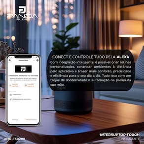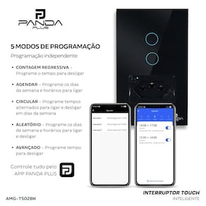 - Controle por voz com Alexa e Google Assistente; - App PandaPlus – Gerencie de qualquer lugar; - Touch sensível e iluminação LED indicadora; - Ideal para iluminação e dispositivos até 16A; - Compatível com redes Wi-Fi 2.4GHz.