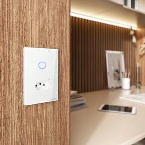 Para estar sempre conectado e garantir uma casa inteligente, o interruptor onne smart Tramontina branco com 1 e 1 tomada 2P+T 10 A 250 V é essencial.Desenvolvido para o controle da iluminação de forma fácil e prática, com ele, você pode efetuar comandos por voz, via e Assistente. Ele permite criar cenas e rotinas inteligentes que podem ser acionadas por sua localização, de acordo com a previsão do tempo ou mesmo fazer o agendamento para que as luzes liguem ao acordar, deixando seu dia a dia mais agradá design é sofisticado, tendo painel de vidro na cor branca, tomada 2P+T e botão Touch retro iluminado com LEDs azuis, que proporcionam comandos com toque suave. O interruptor é bivolt, tem corrente máxima de 10 amperes e precisa de fio neutro para a instalação, assim como rede Wi-Fi de giga hertz. Ele ainda possui bluetooth para auxiliar na configuração no aplicativo e aceita comunicação por rádio frequência 433 hertz, permitindo que você acione a iluminação através de controles uma casa com conexão e iluminação eficiente, escolha o interruptor onne smart Tramontina!
