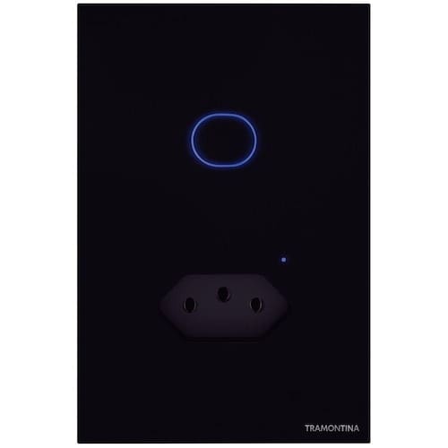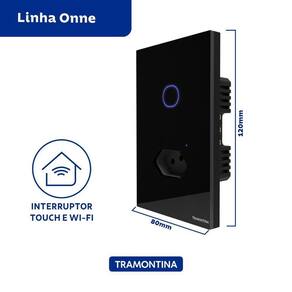 O interruptor Onne touch smart Tramontina preto com 1 canal e 1 tomada 2P+T 10 A 250 V é a escolha ideal para estar sempre conectado e garantir uma casa inteligente.Com ele, você tem o controle total da iluminação e de forma fácil e prática, efetuando comandos por voz, via Alexa e Google Assistente. Ele proporciona a criação de cenas e rotinas inteligentes, que podem ser acionadas por sua localização, de acordo com a previsão do tempo ou mesmo fazer o agendamento para que as luzes liguem ao acordar, deixando seu dia a dia mais agradável.Seu design é moderno e sofisticado, tendo painel de vidro na cor branca, tomada 2P+T e botão Touch retro iluminado com LEDs azuis, que proporcionam comandos com toque suave. O interruptor é bivolt, tem corrente máxima de 10 amperes e precisa de fio neutro para a instalação, assim como rede Wi-Fi de 2.4 giga hertz. Ele ainda possui bluetooth para auxiliar na configuração no aplicativo e aceita comunicação por rádio frequência 433 mega hertz, permitindo que você acione a iluminação através de controles remotos.Escolha Tramontina e fique sempre conectado com o lugar que você mais gosta no mundo: a sua casa!