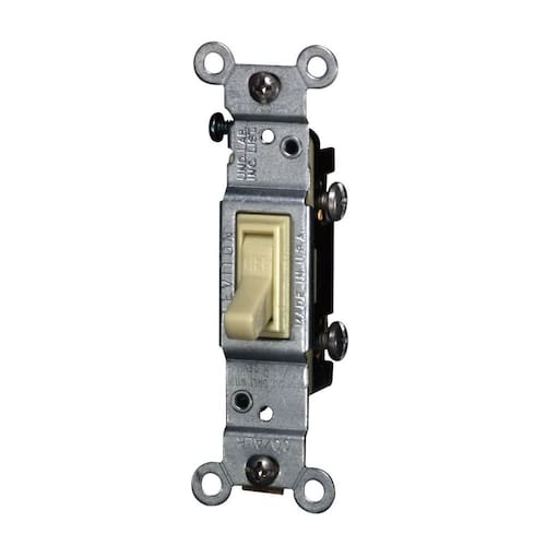 Leviton Interruptor silencioso de 15 Amp, 120 volts, alternância Co/Alr monopolar CA, grau residencial, aterramento, 2651-2I, marfim